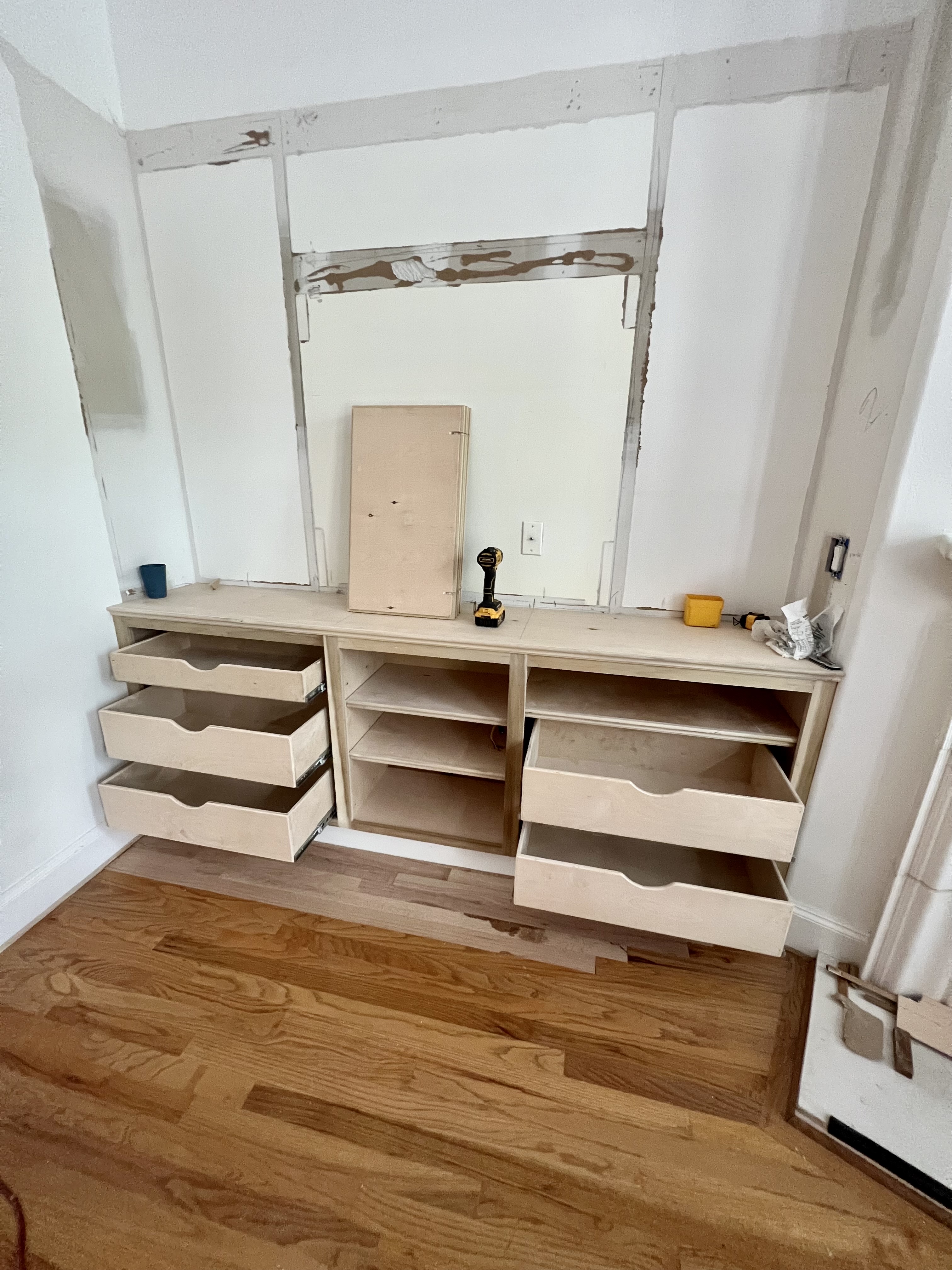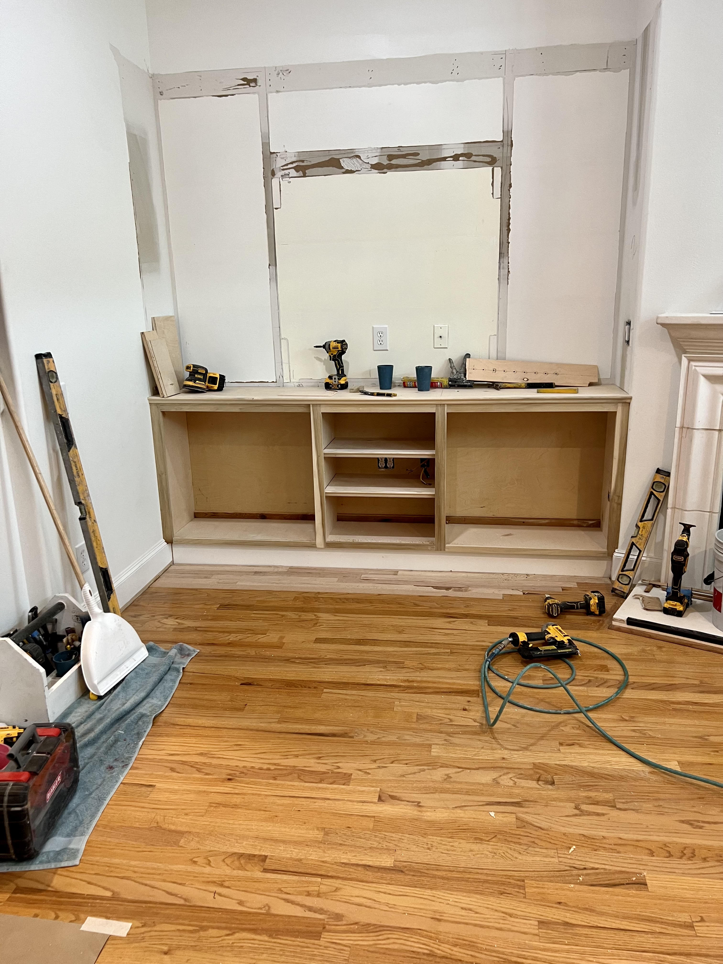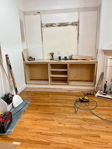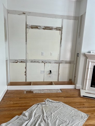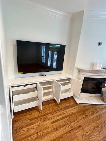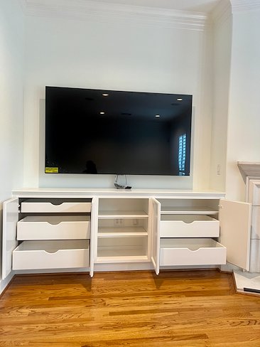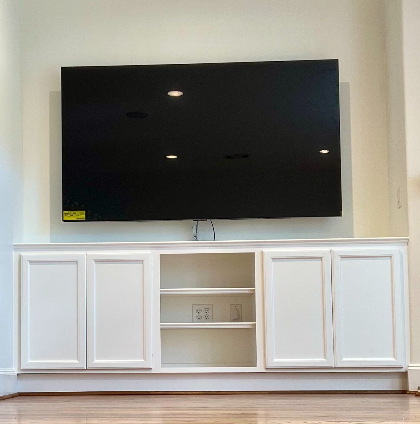Our client wanted a built-in look in his living room and we designed a built-in entertainment center for his family for a modern, finished look.
