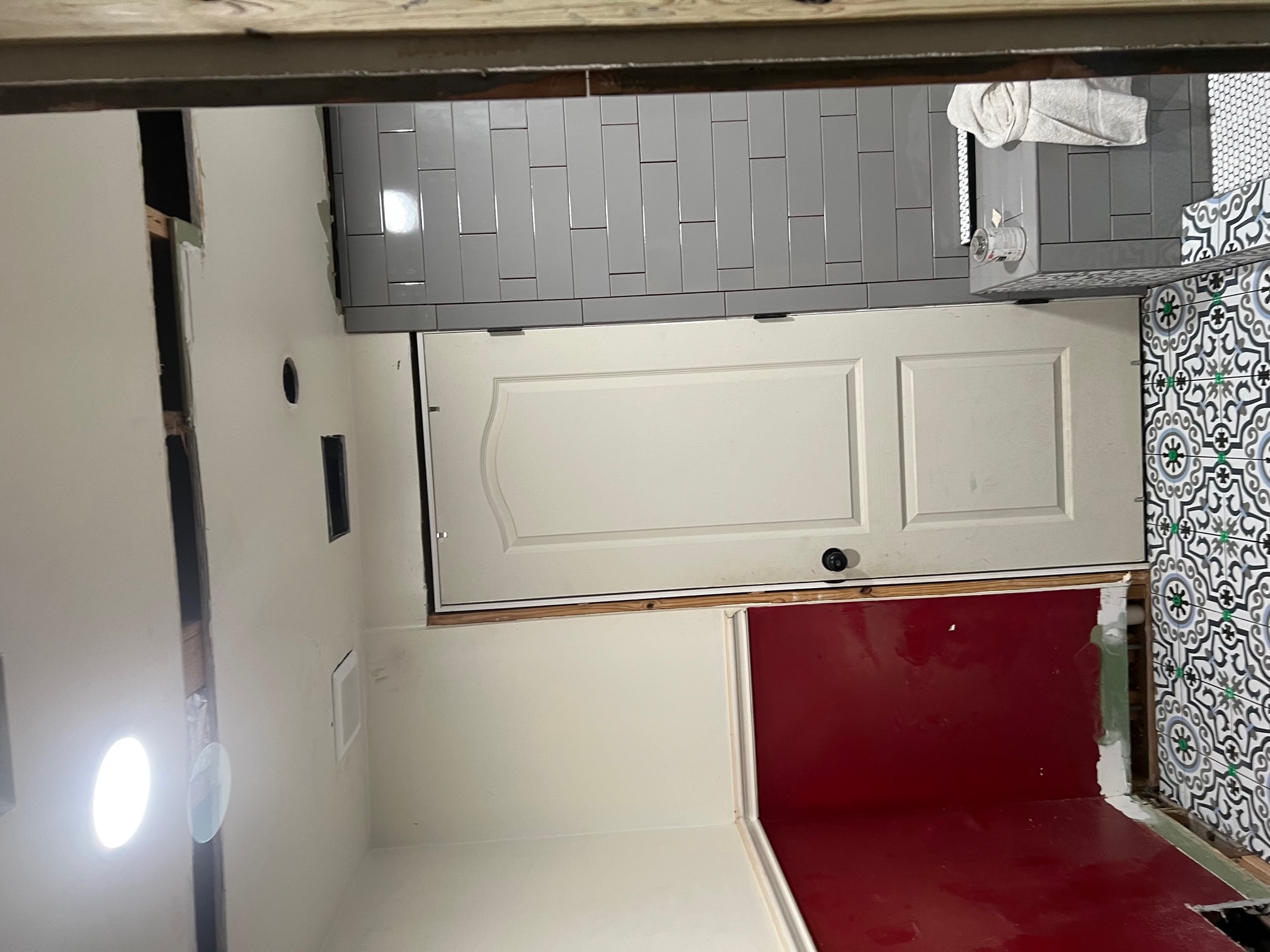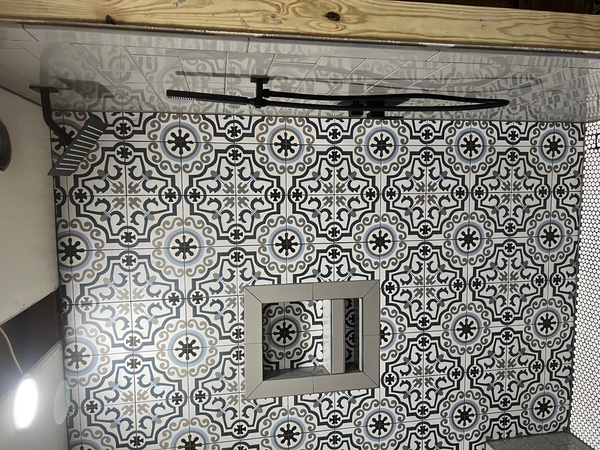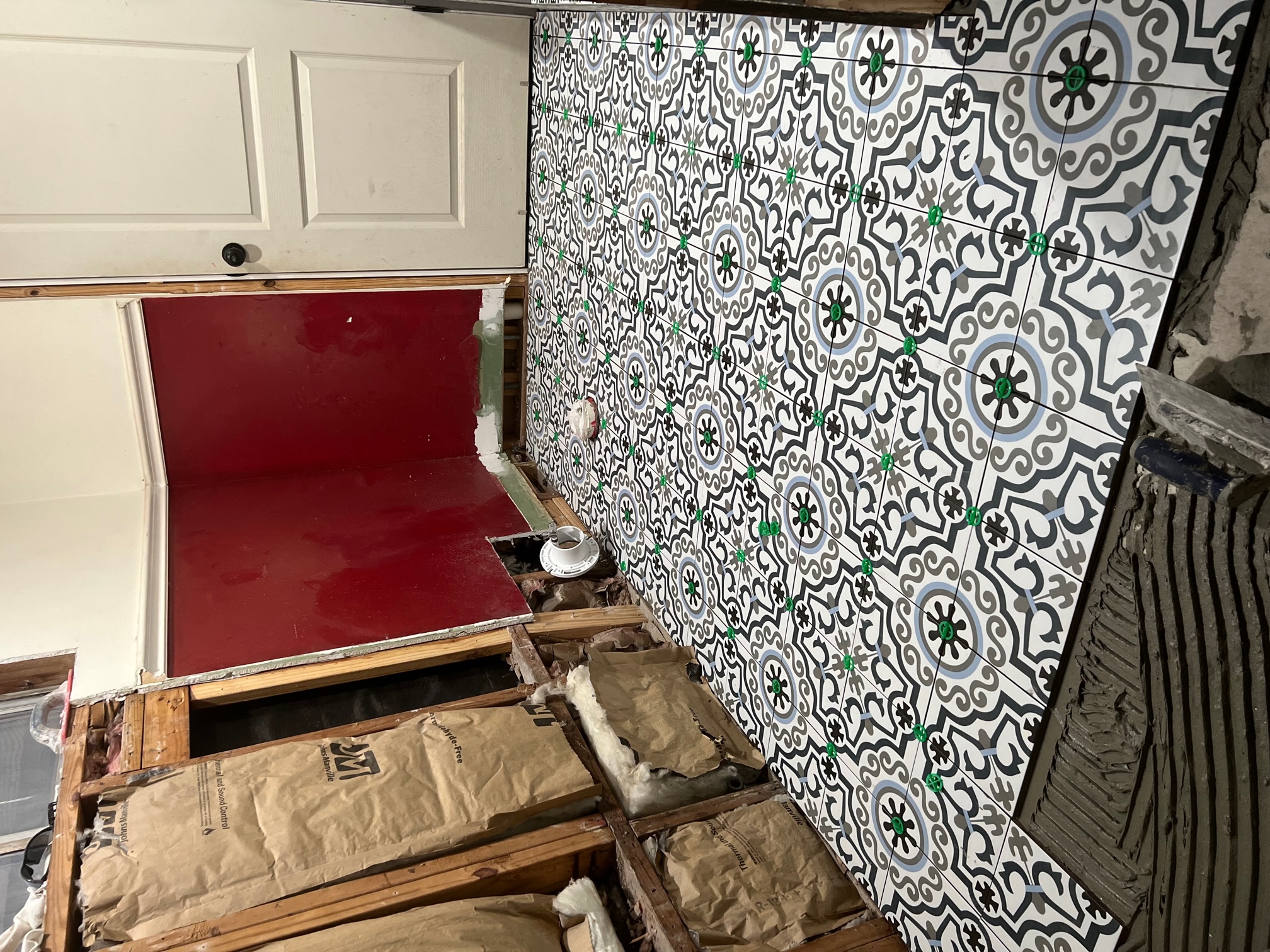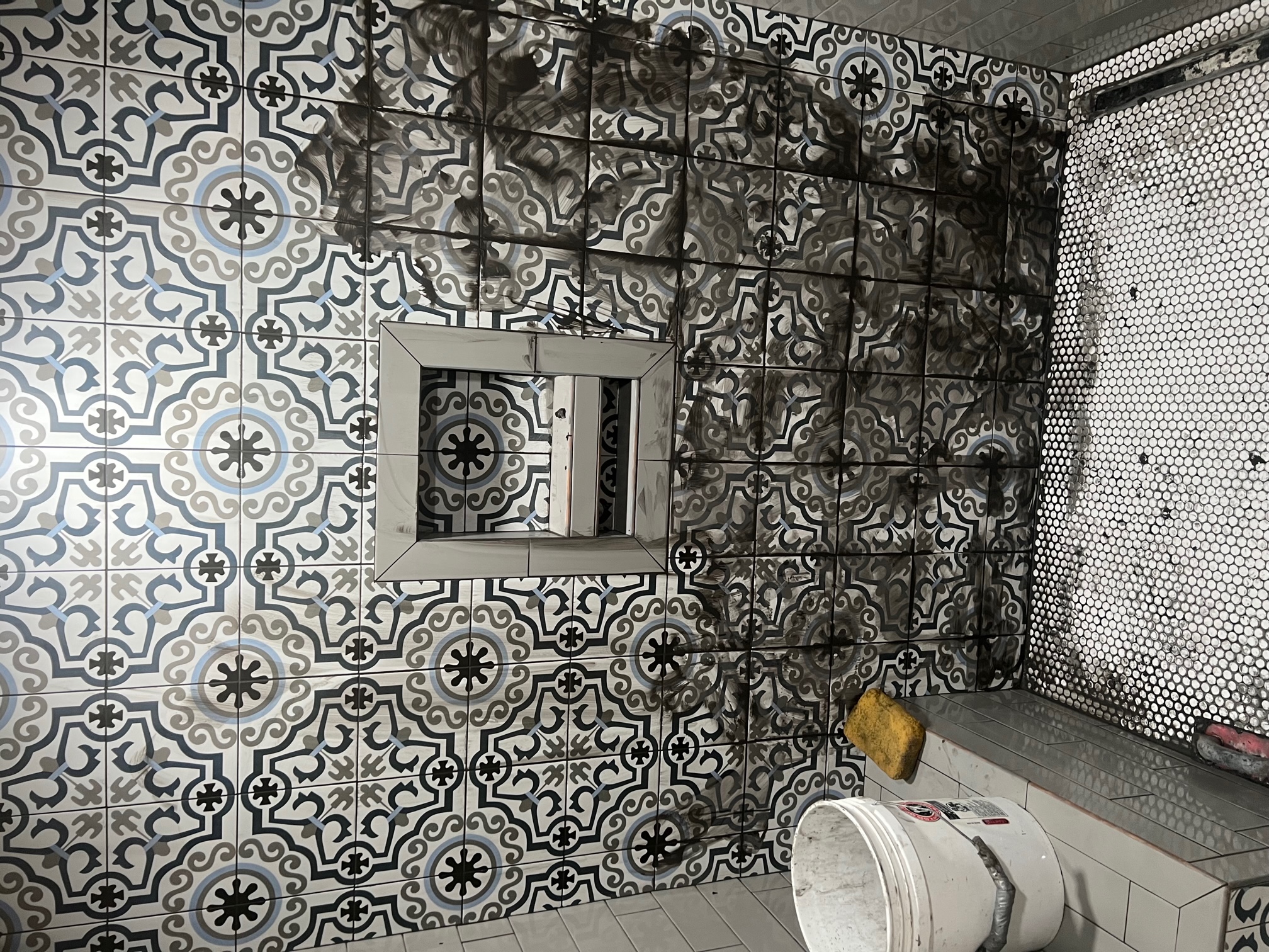 This cold bathroom was created using custom tile and our client was beyond happy with the end result.