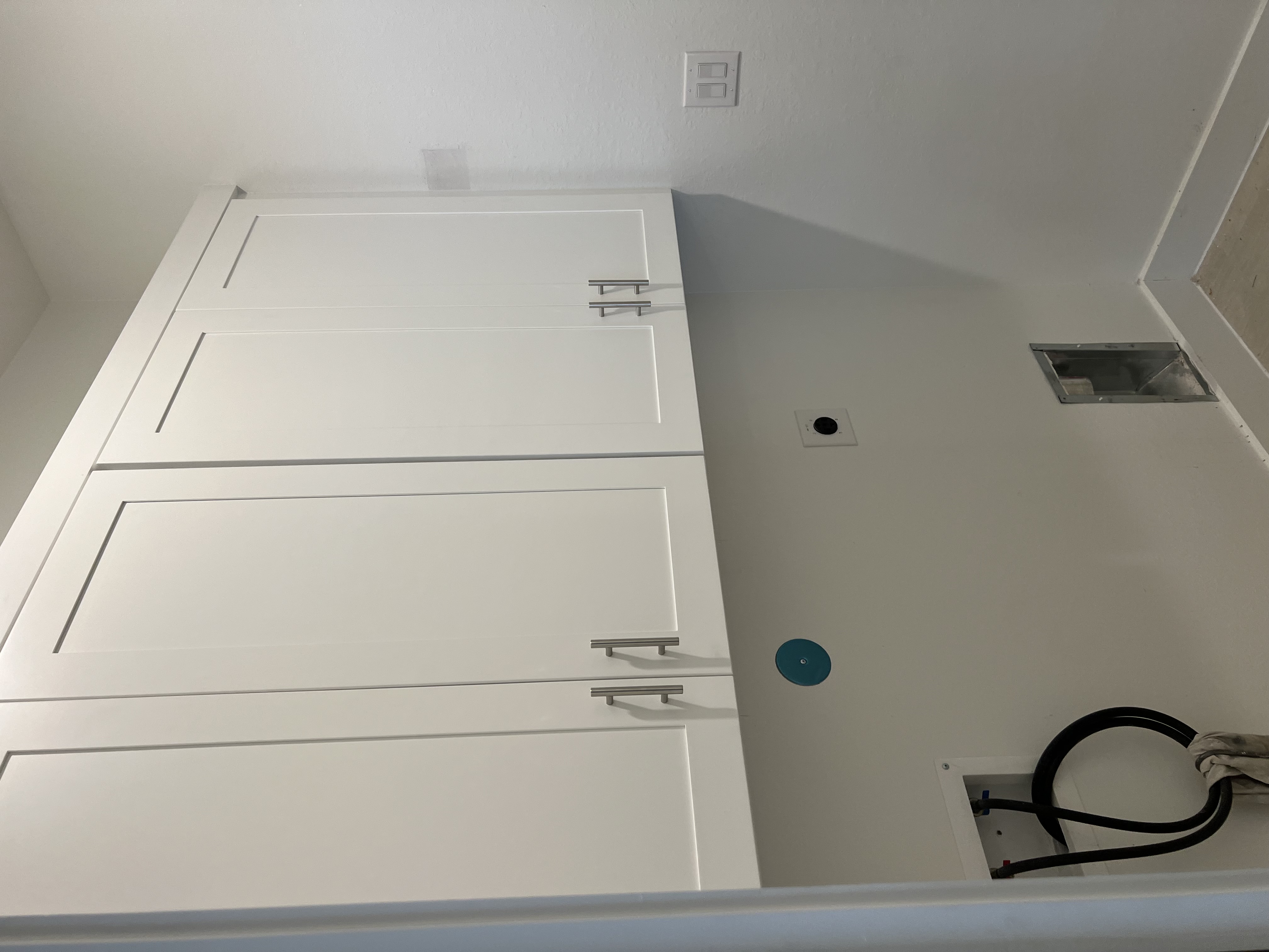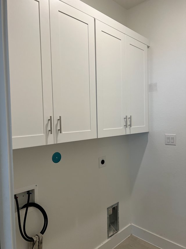 Who couldn't use a little extra storage space? Our client found the perfect spot in their home to add a custom built in wardrobe and opted for additional cabinets in their laundry room.